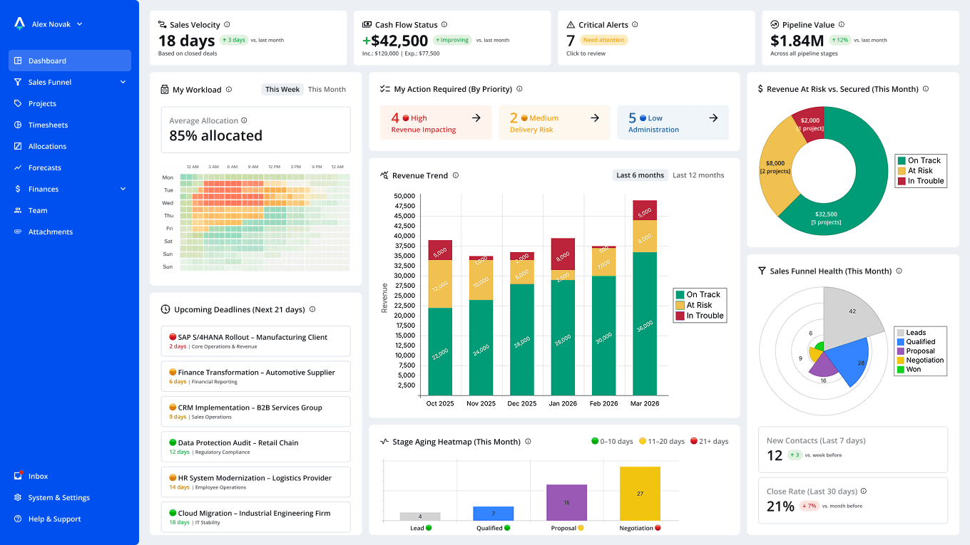 Know what’s on track, what’s at risk, and what needs attention—before issues turn into surprises impacting delivery or revenue.