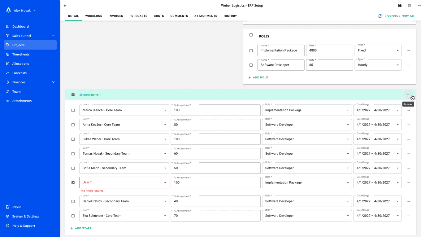 Because rates and assignments are connected to forecasts and invoices, you understand the true revenue and cost impact of every team member.